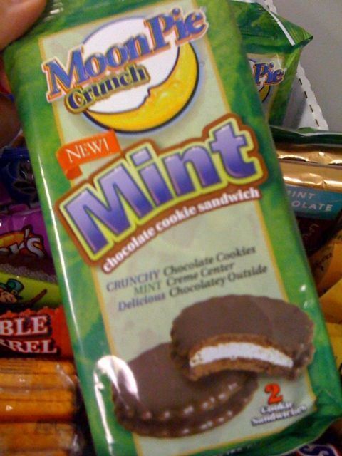 The worst never came. It was amazing. Jamie Oliver would be so pissed off right now…I went and told other people at work they needed to try one too. Now I’m -in theory- telling the world. Go eat a *new* mint flavored Moon Pie. Dot it. It’s like a thin mint and an Oreo got together and made babies.